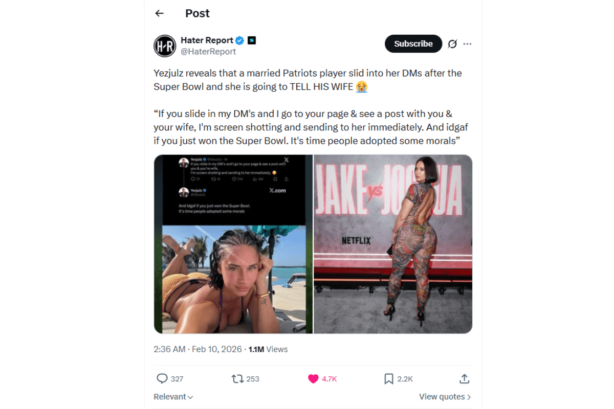 The situation gained momentum when YesJulz posted a message suggesting that a recently honored NFL player privately contacted her despite being married. While her initial post did not name the individual, reports and online speculation quickly connected the situation to a Patriots offensive standout who had just completed a prominent Pro Bowl performance — elevating his profile across the league.